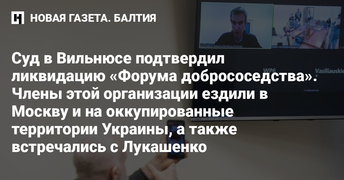 Районный суд Вильнюса ранее признал, что реальной целью «Международного форума добрососедства» стало публичное распространение ложной информации о Литве, действия против конституционного порядка и разжигание социальной розни. Суд указал, что при создании «Форума» не были оформлены обязательные документы об учреждении юридического лица.