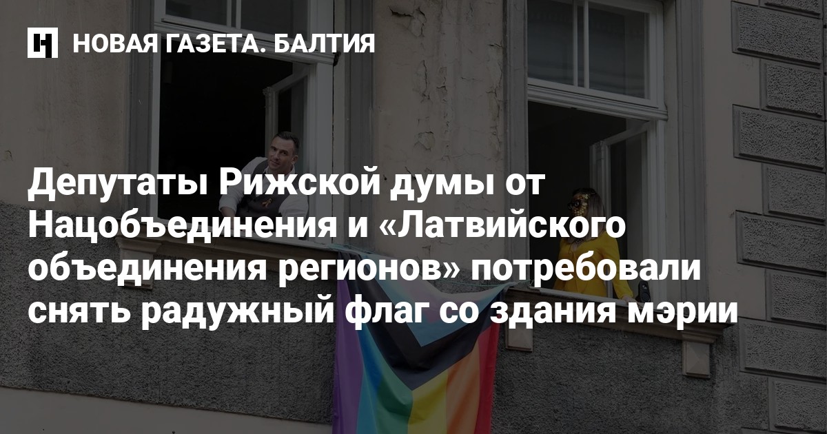 Депутаты Рижской думы от Нацобъединения и «Латвийского объединения регионов» потребовали снять со здания мэрии радужный флаг, передает Rus.tvnet.lv. Депутаты считают, что мэр Риги поступил самовольно.