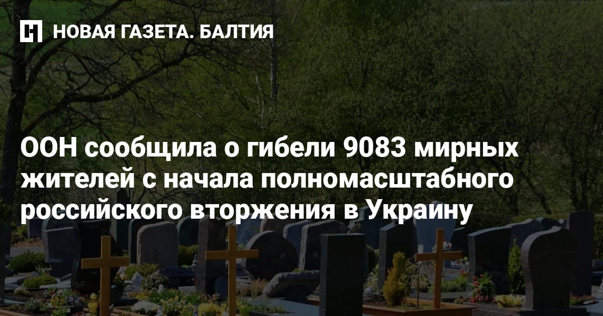 С начала полномасштабного вторжения России в Украину погибли 9083 мирных жителя Украины, еще 15 779 гражданских лиц получили ранения различной степени тяжести, говорится в докладе Управления Верховного комиссара ООН по правам человека