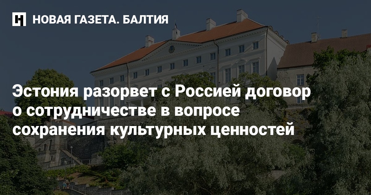 Эстония намерена разорвать заключенный с Россией в 1998 году договор о сотрудничестве в вопросе сохранения культурных ценностей. Действие документа будет прекращено распоряжением правительства. Об говорится в повестке заседания кабинета министров на 29 июня, пишет Rus.err.ee.