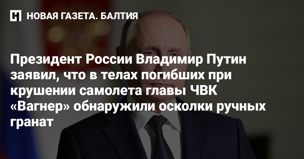 В телах погибших при крушении самолета главы ЧВК «Вагнер» Евгения Пригожина обнаружены осколки ручных гранат, заявил президент России Владимир Путин на сессии дискуссионного клуба «Валдай».