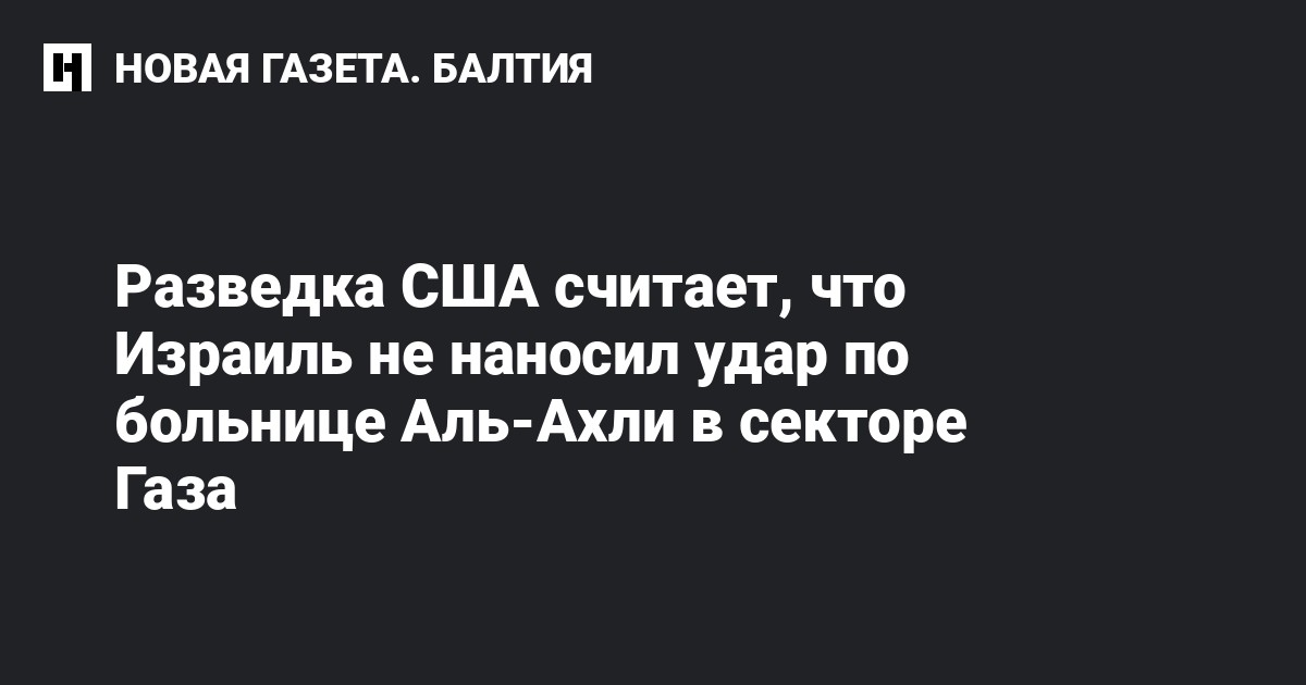 Американская разведка считает, что Израиль не наносил удар по больнице Аль-Ахли в секторе Газа, передает DW. В министерстве обороны США пришли к выводу, что ракета выпущена с территории сектора Газа и упала возле больницы.