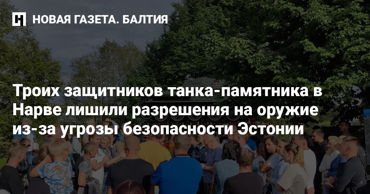 Департамент полиции и погранохраны Эстонии отозвал разрешения на оружие, выданные троим жителям Ида-Вирумаа. Отзыв разрешения связан с тем, что эти три человека активно выступали против демонтажа памятника-танка в Нарве, тем самым угрожая общественному порядку и государственной безопасности, передает ERR.