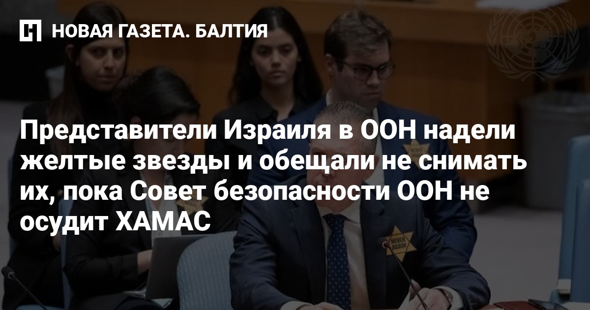 Постоянный представитель Израиля при ООН Гилад Эрдан и другие представители делегации надели желтые звезды с надписью «Больше никогда» на заседание совбеза ООН 30 октября. Гилад Эрдан пообещал не снимать знак, пока совет безопасности не осудит ХАМАС за атаку на Израиль и не потребует освободить всех заложников, передает DW.