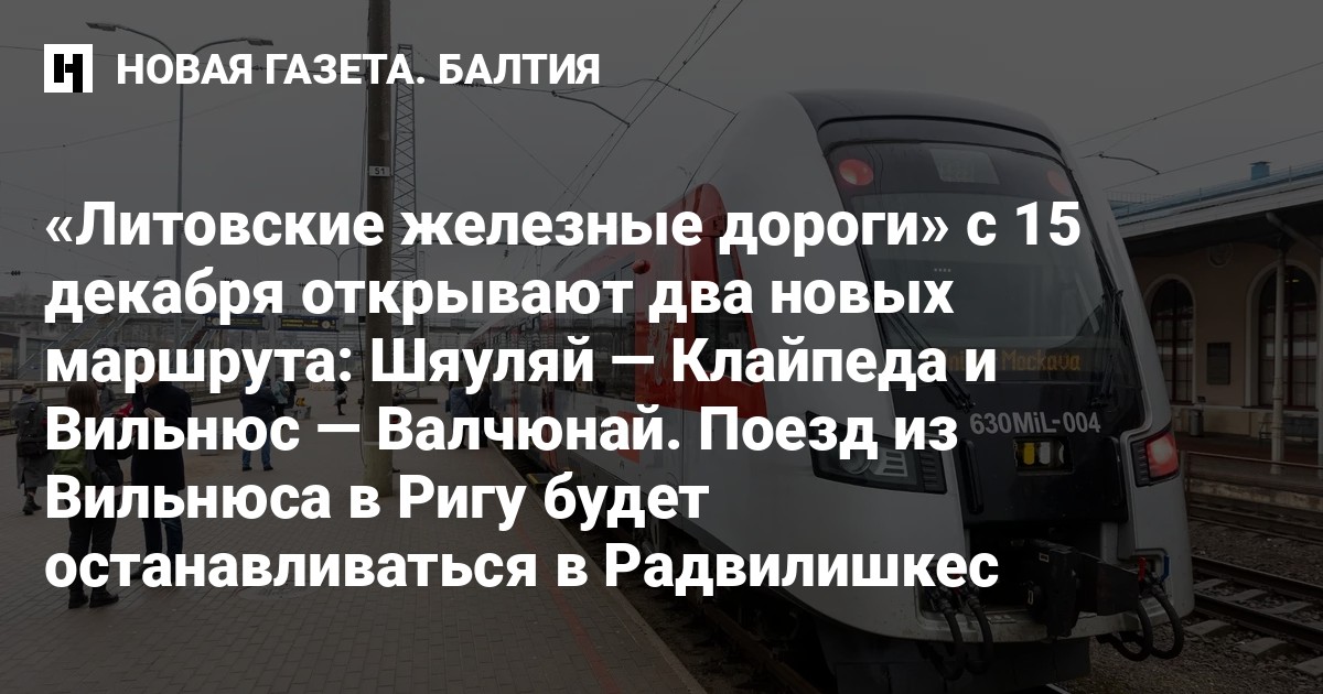 С 15 декабря «Литовские железные дороги» вводят два новых маршрута: Шяуляй–Клайпеда и Вильнюс–Валчюнай.