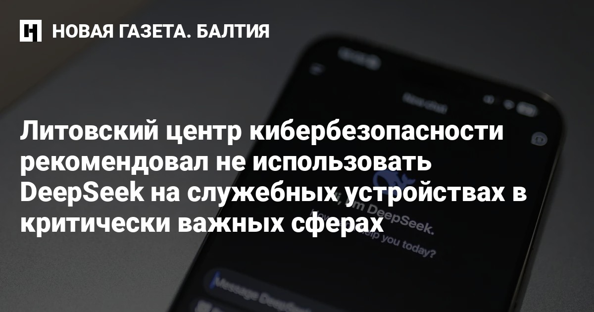 Национальный центр кибербезопасности Литвы (NKSC) рекомендовал сотрудникам критически важных секторов не использовать на служебных устройствах разработанную в Китае нейросеть DeepSeek, сообщает BNS.