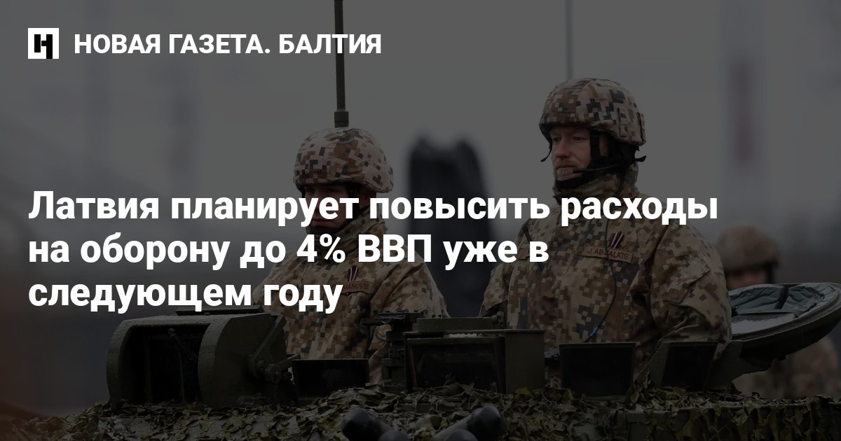Латвия планирует в следующем году увеличить расходы на оборону до 4% ВВП и в последующие годы двигаться к цели в 5%, заявили премьер-министр Эвика Силиня и министр обороны Андрис Спрудс.