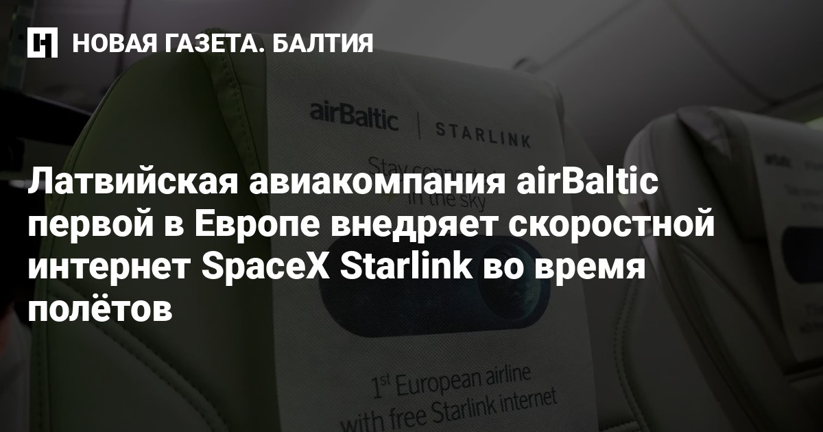 Латвийская авиакомпания airBaltic первой в Европе внедряет высокоскоростной интернет Starlink от SpaceX на борту своих самолетов Airbus A220-300. Компания получила сертификацию от Агентства по безопасности полетов ЕС (EASA).