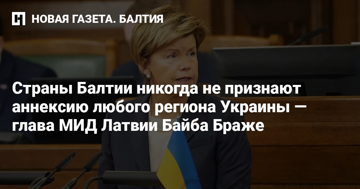 Страны Балтии никогда не признают аннексию Крыма, Донецка, Луганска или любого другого региона Украины, заявила глава МИД Латвии Байба Браже на заседании Совета Безопасности ООН в Нью-Йорке, передает LETA.