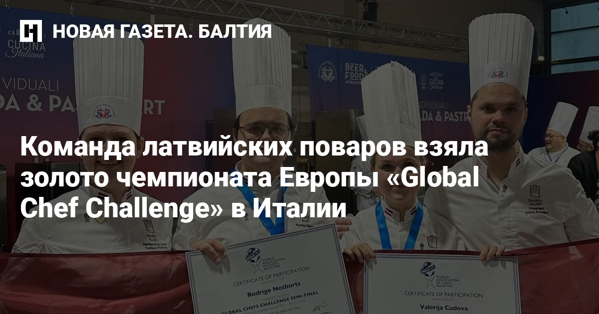 Команда латвийских поваров взяла золото чемпионата Европы «Global Chef Challenge», который проходил в Италии в феврале, сообщает Клуб поваров Латвии.