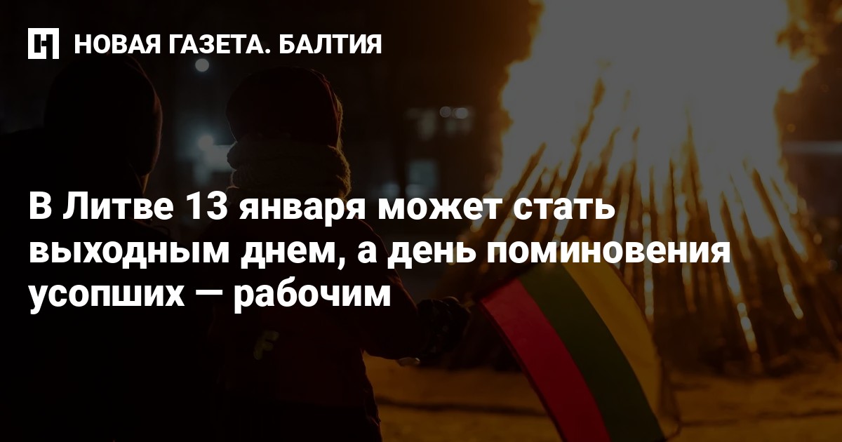 Литовское правительство поддержало предложение объявить 13 января выходным днем, но 2 ноября (День поминовения усопших) предлагается сделать рабочим, пишет Delfi.