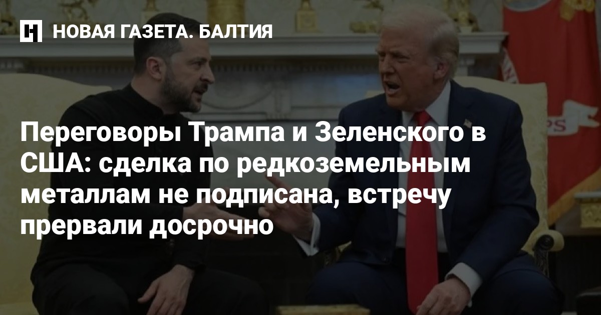 После перепалки в Овальном кабинете пресс-конференция, запланированная после закрытых переговоров, была отменена. По данным Reuters, соглашение об украинских недрах, ради которого Зеленский прилетел в США, не было подписано.
