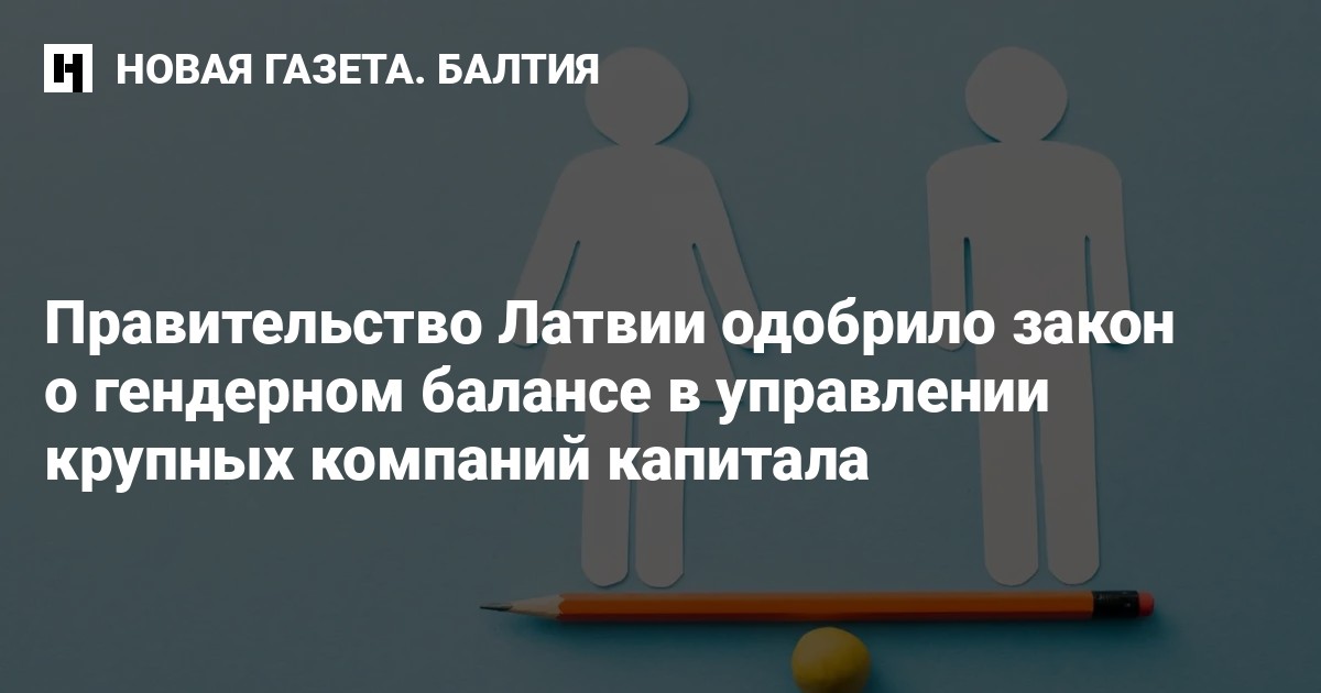Правительство Латвии поддержало закон о гендерном балансе в управлении крупных компаний капитала. Окончательное решение по законопроекту предстоит принять Сейму.