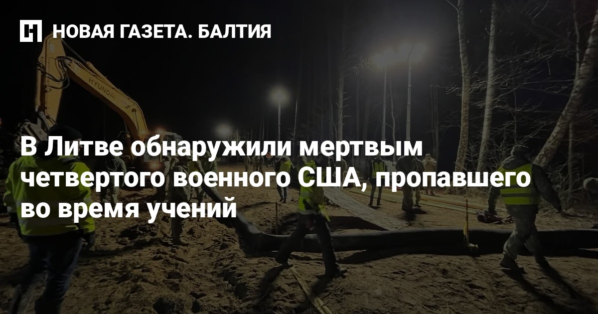 1 апреля неподалеку от полигона в Пабраде обнаружили тело четвертого американского военного, пропавшего во время учений в Литве. Об этом сообщило командование армии США в Европе и Африке.
