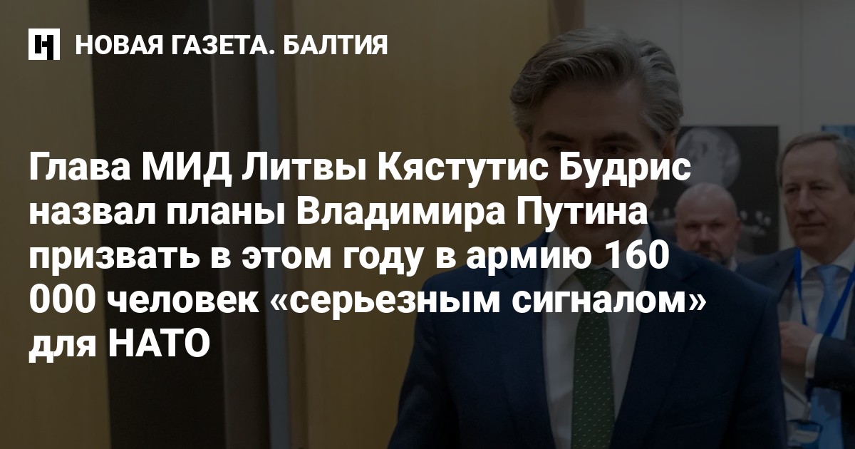 Планы Владимира Путина призвать в этом году в армию 160 000 человек — это серьезный сигнал альянсу НАТО. Об этом заявил министр иностранных дел Кястутис Будрис, пишет Delfi.