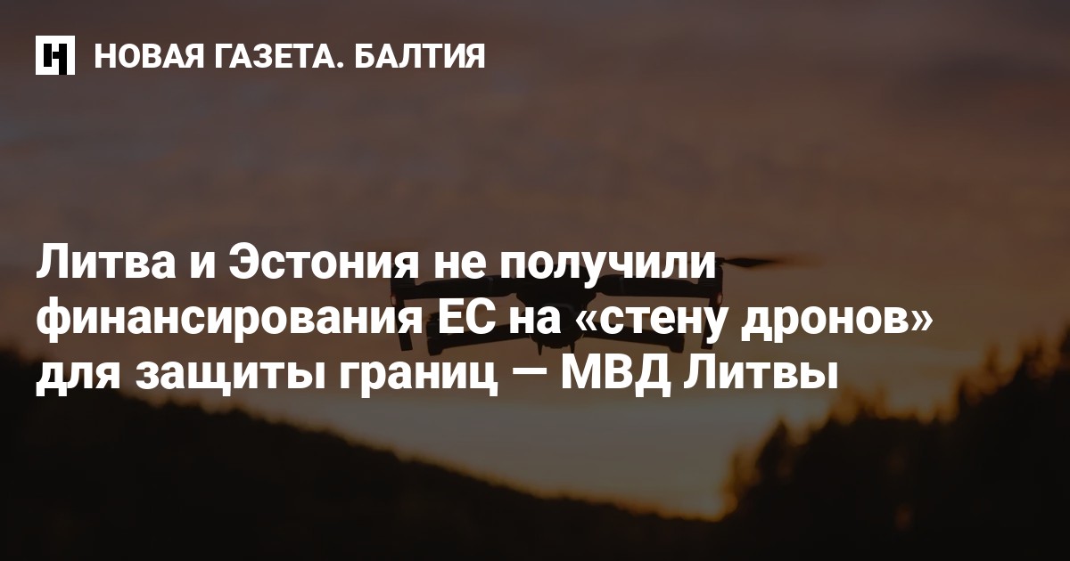 Эстония и Литва не получили финансирования от Евросоюза на так называемую «стену дронов» для защиты границ, сообщает LRT со ссылкой на МВД Литвы.