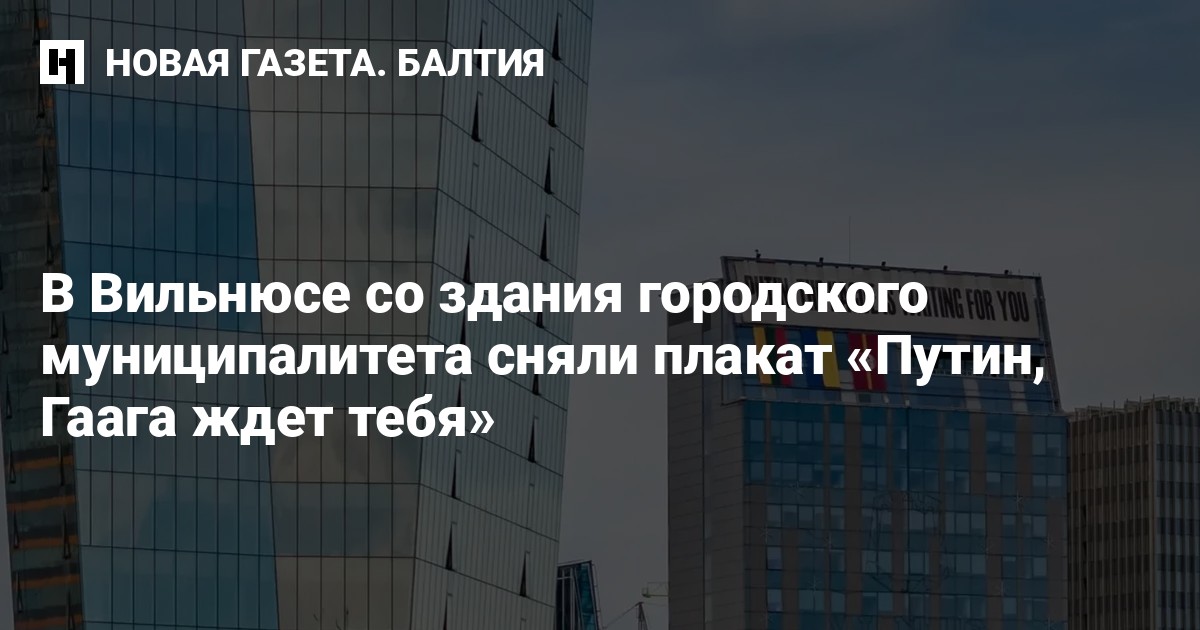 Со здания Вильнюсского городского муниципалитета временно сняли плакат с надписью «Путин, Гаага ждет тебя» в связи с ремонтными работами, говорится на сайте мэрии.