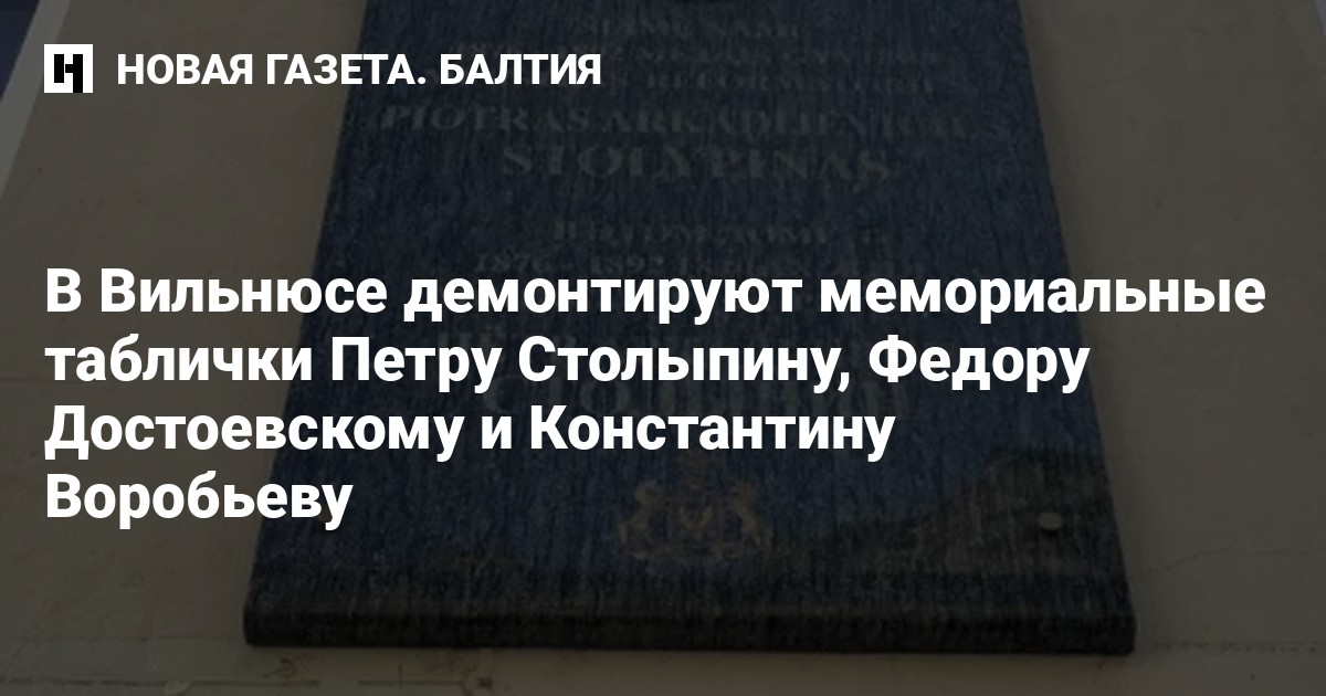 По предложению Комиссии по исторической памяти будут демонтированы мемориальные доски премьер-министру царской России Петру Столыпину, русским писателям Константину Воробьеву и Федору Достоевскому, а также литовскому писателю Людасу Гире.