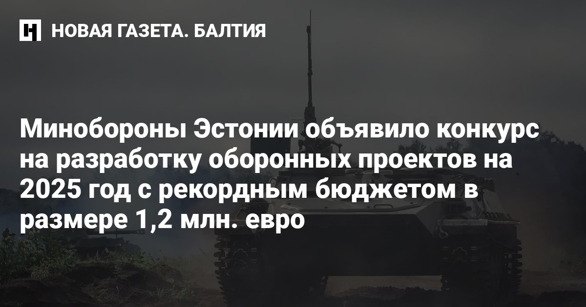 Министерство обороны Эстонии объявило конкурс на разработку оборонных проектов на 2025 год с рекордным бюджетом в размере 1,2 млн. евро, пишет Rus.err.ee.