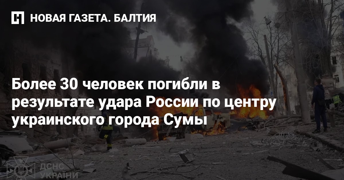 В результате удара России по центру украинского города Сумы погибли более 30 человек, сообщил президент Украины Владимир Зеленский.