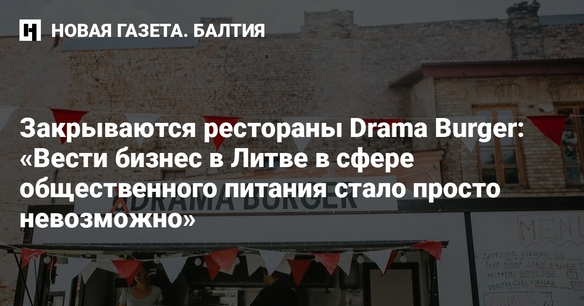Ресторан Drama Burger объявил о закрытии. «Наступил момент, когда вести бизнес в Литве, особенно в сфере общественного питания, стало просто невозможно», — заявила команда в прощальном посте в Facebook.