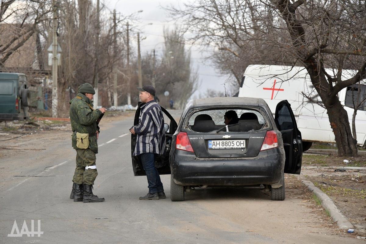 Боевик «ДНР» остановил жителя Мариуполя, апрель 2022 года. Фото: ДАН