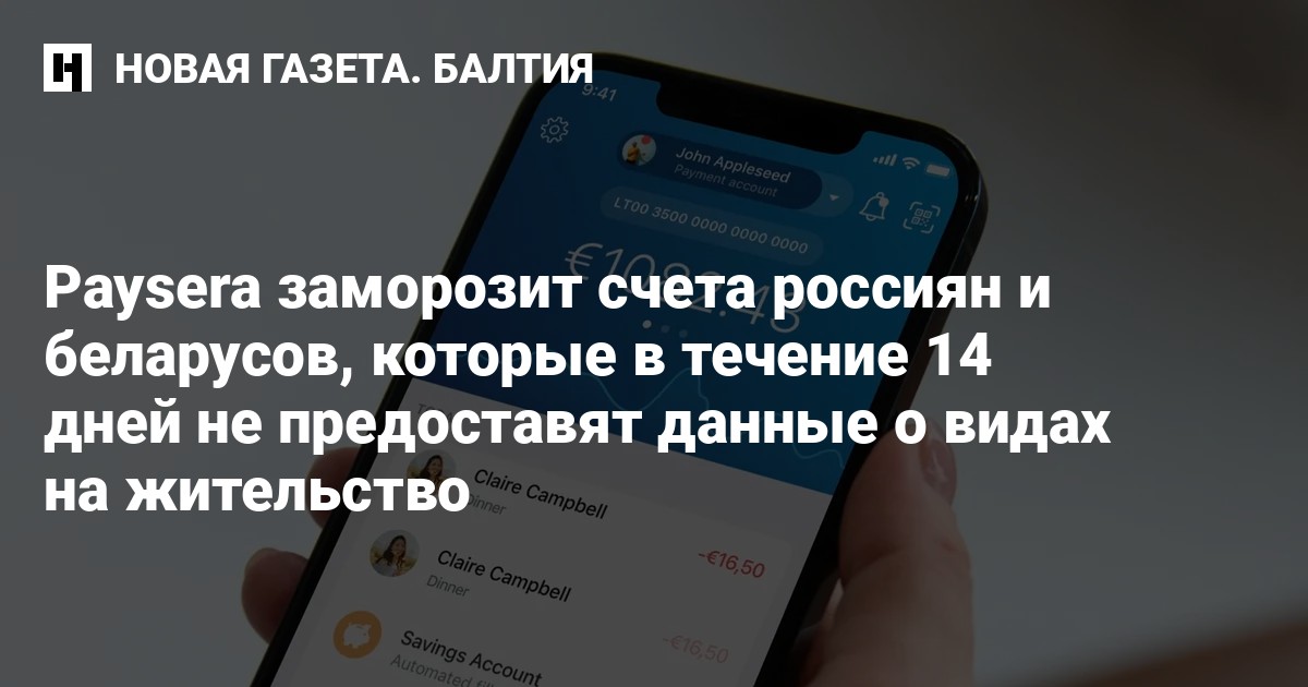 Литовский банк Paysera предупредил граждан России и Беларуси о заморозке счетов, если в течение 14 дней они не предоставят данные о виде на жительство. Об этом сообщает Новая-Европа.