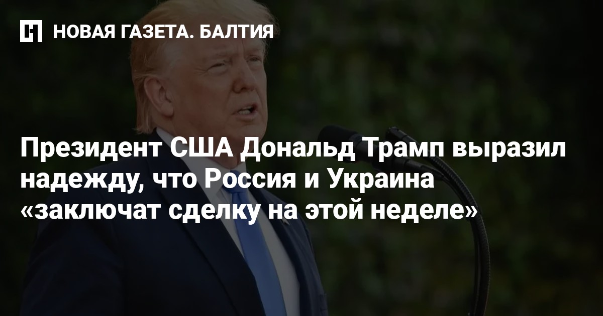 Президент США Дональд Трамп выразил надежду, что Россия и Украина «заключат сделку на этой неделе». Об этом он написал в соцсети Truth Social.