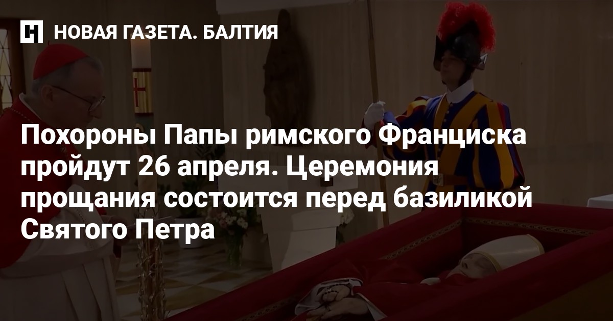 Похороны папы римского Франциска пройдут 26 апреля, сообщил Ватикан. Церемония начнется в 10:00 по местному времени.