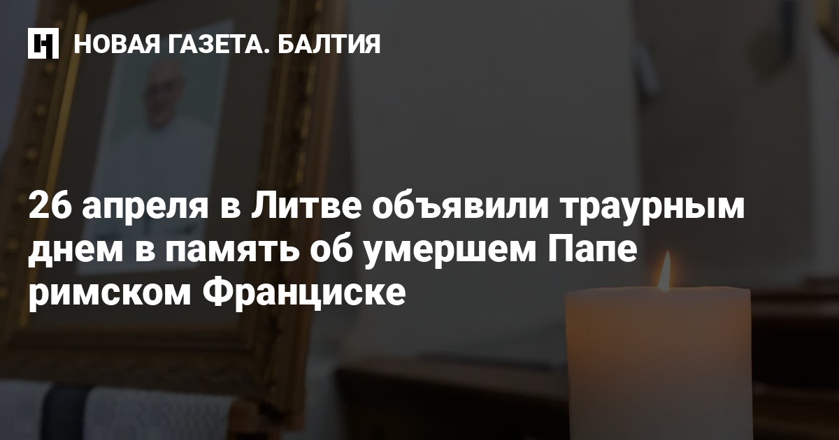 Правительство Литвы объявило 26 апреля траурным днем в память Папы Франциска, который умер 21 апреля.