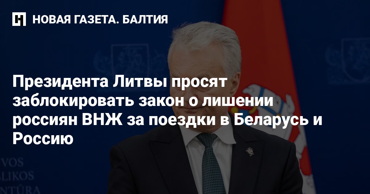 В Литве начали собирать подписи под петицией к президенту Гитанасу Науседе с просьбой наложить вето на закон, позволяющий лишать граждан России видов на жительство за поездки в Россию и Беларусь чаще одного раза в три месяца.