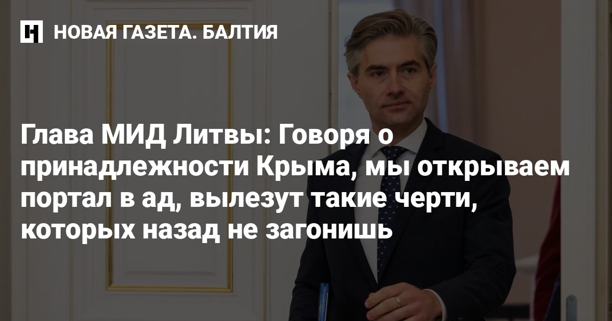 «Ставя под сомнение принципы международного права и вопрос суверенитета Крыма, мы открываем дверь в ад, из которого вылезут такие черти, которых уже никто не сможет загнать обратно. Это приведёт к драматическому снижению влияния США и их способности навязывать правила, основанные на их колоссальной гиперсиле», — заявил глава МИД Литвы.