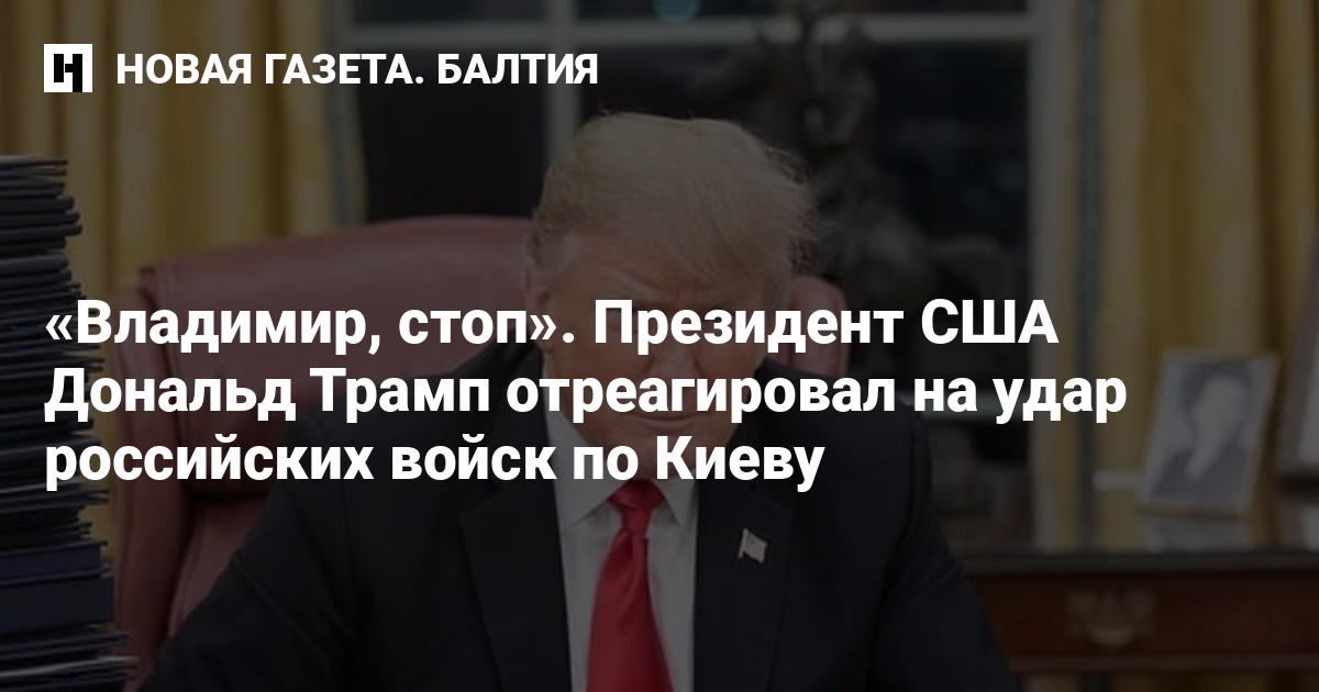 «Мне не нравятся российские удары по Киеву. Не было необходимости, и время выбрано неудачно. Владимир, стоп! Еженедельно погибают 5000 солдат. Давайте достигем мирного соглашения», — написал Трамп в соцсети Truth Social.