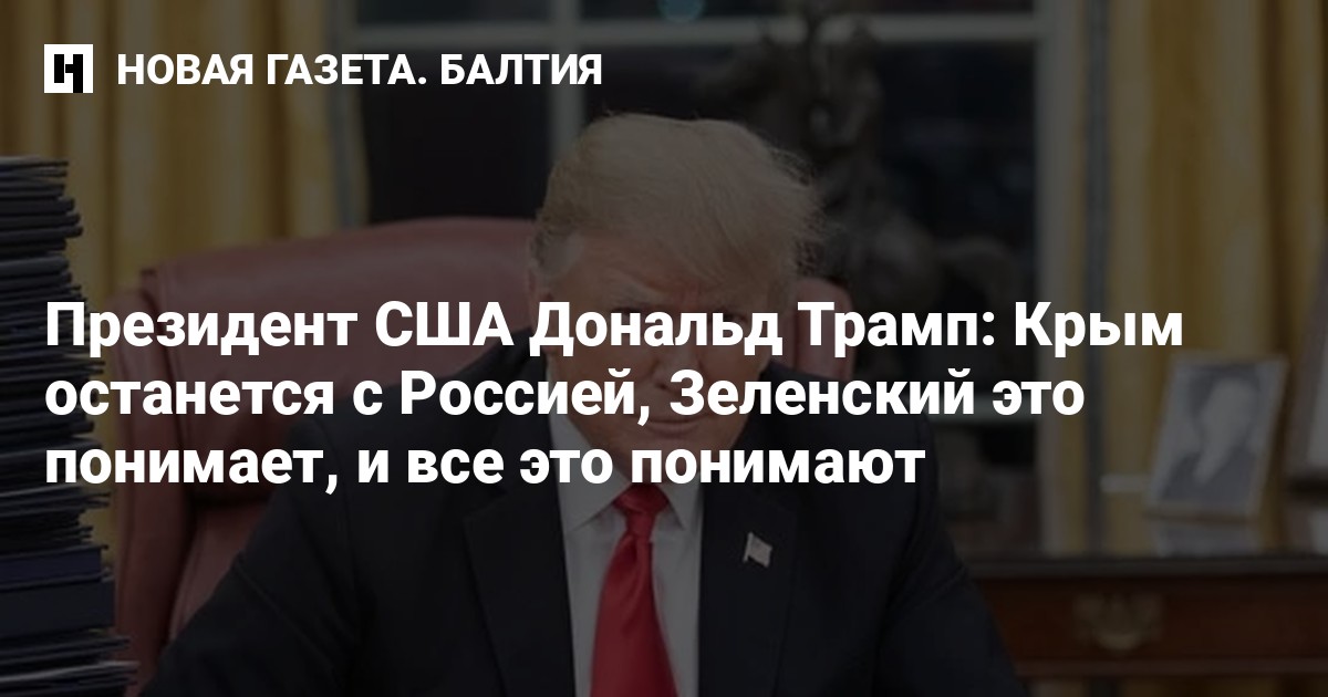 Президент США Дональд Трамп в интервью Time заявил, что Крым останется с Россией. «Крым останется с Россией. И Зеленский это понимает, и все понимают. Это война, которая никогда не должна была произойти», — сказал Трамп.
