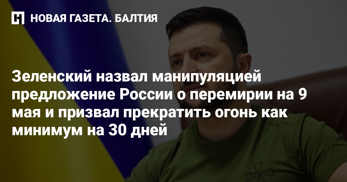 «Сейчас — очередная попытка манипуляций: почему-то все должны ждать 8 мая и только тогда прекратить огонь, чтобы обеспечить Путину тишину на время парада», — заявил Зеленский. «Мы ценим жизнь людей, а не парады. Поэтому мы считаем, что нет причин ждать 8 мая. И огонь должен быть прекращен не несколько дней, чтобы потом снова убивать. Немедленное, полное и безусловное прекращение огня — и по меньшей мере на 30 дней, чтобы было гарантировано и надежно», — добавил президент Украины.