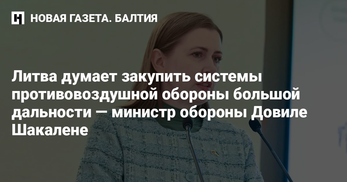 Литва рассматривает возможность закупить системы противовоздушной обороны (ПВО) большой дальности. Об этом в интервью TV3 заявила министр обороны Довиле Шакалене.
