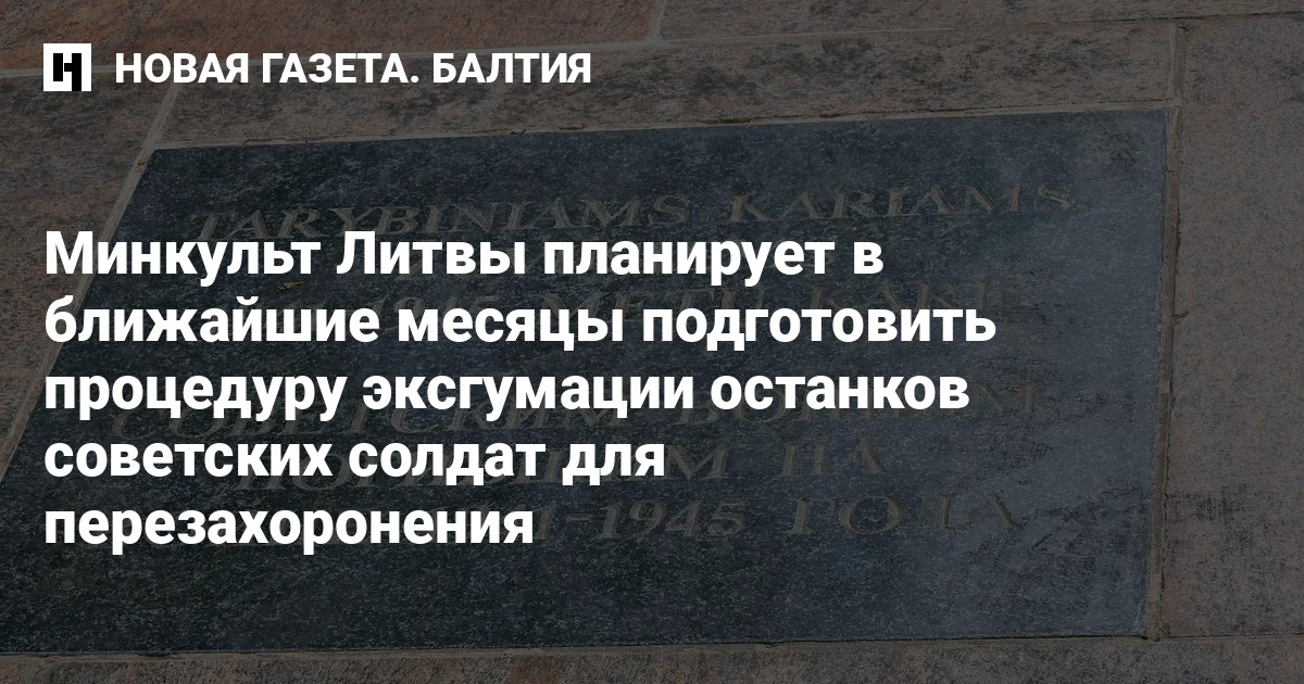 Министерство культуры Литвы в ближайшие месяцы подготовит процедуру эксгумации останков советских солдат для их перезахоронения, сообщает BNS. После этого документ отправят на согласование ведомств, далее — правительству.