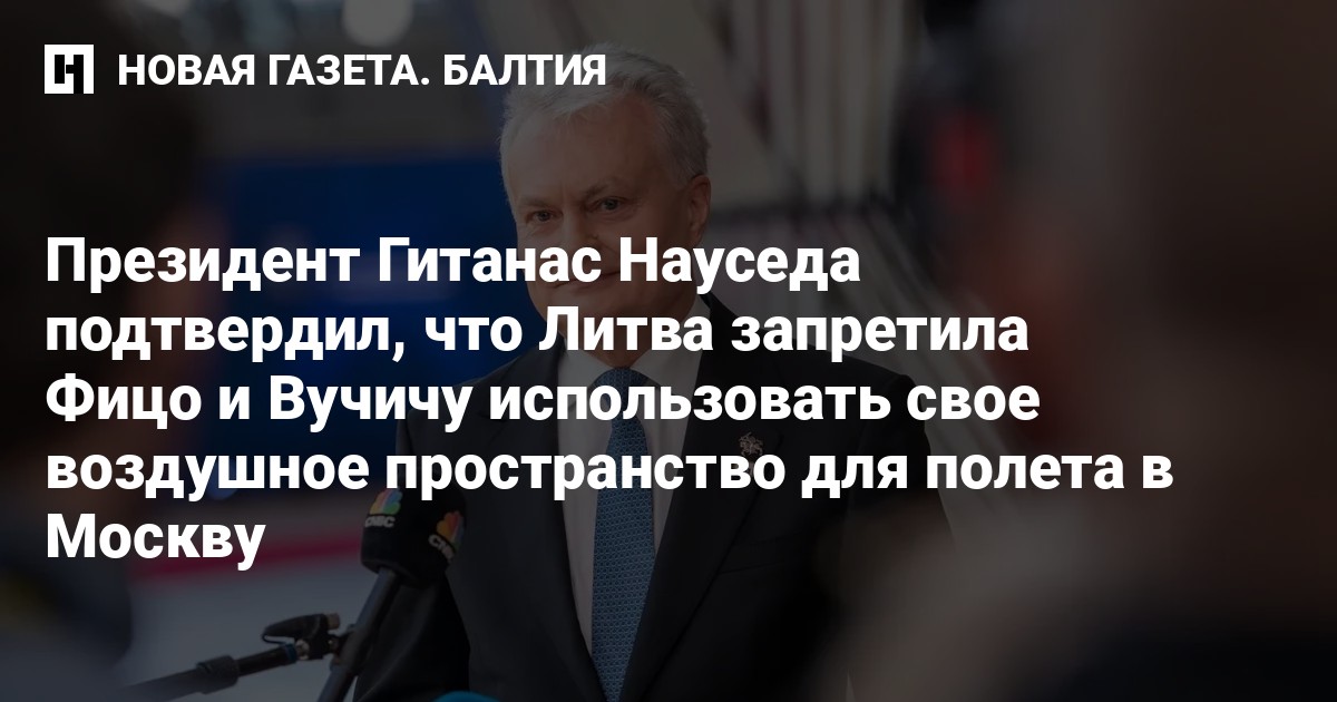 Президент Литвы Гитанас Науседа подтвердил, что Литва запретила использовать свое воздушное пространство для перелета президента Сербии Александра Вучича и премьер-министра Словакии Роберта Фицо на их пути на парад 9 мая в Москве, сообщает 15min.lt.