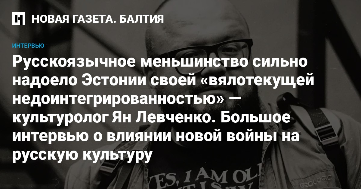 Культуролог и журналист Ян Левченко родился и вырос в Эстонии. После защиты диссертации в Тартуском университете более двадцати лет работал в России, в том числе профессором НИУ «Высшая школа экономики», сотрудничал с рядом изданий в качестве колумниста. После начала полномасштабной войны вернулся в Таллинн, где работал в медиа, а сейчас занят в просветительских проектах — как в Эстонии, так и в других европейских странах. Историк и краевед Иван Лаврентьев обсудил с культурологом Яном Левченко влияние новой войны на русскую культуру.