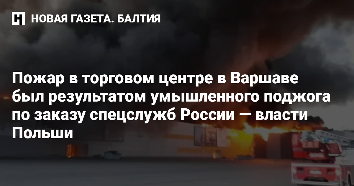 Пожар в торговом центре Marywilska, 44 в Варшаве 12 мая 2024 года был результатом умышленного поджога, организованного по заказу российских спецслужб, говорится в совместном заявлении министра юстиции, министра внутренних дел, генерального прокурора и координатора спецслужб Польши.