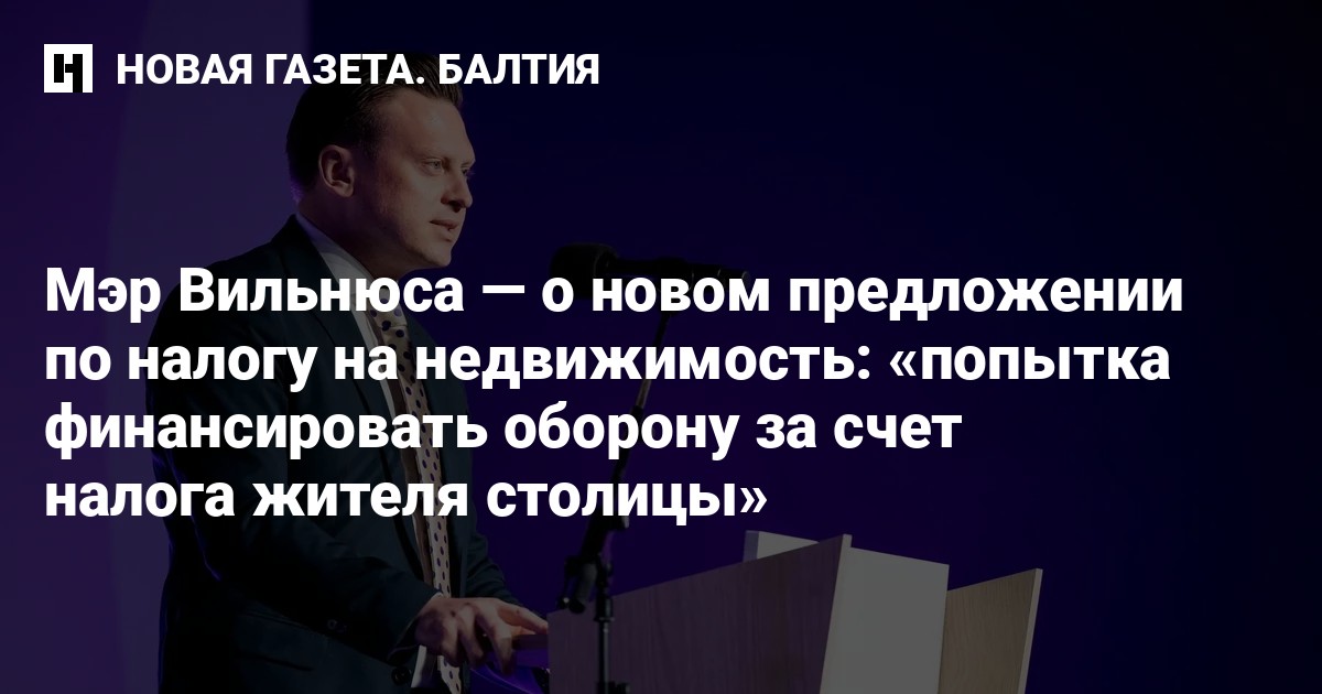 Мэр Вильнюса Валдас Бенкунскас раскритиковал новое предложение по налогу на недвижимость, по которому муниципалитеты смогут устанавливать минимальный порог стоимости объектов, которые облагаются налогом, от 20 до 80 тысяч евро. По словам мэра литовской столицы, если такую модель примут, это станет попыткой финансировать оборону за счет «налога жителя Вильнюса», передает Delfi.
