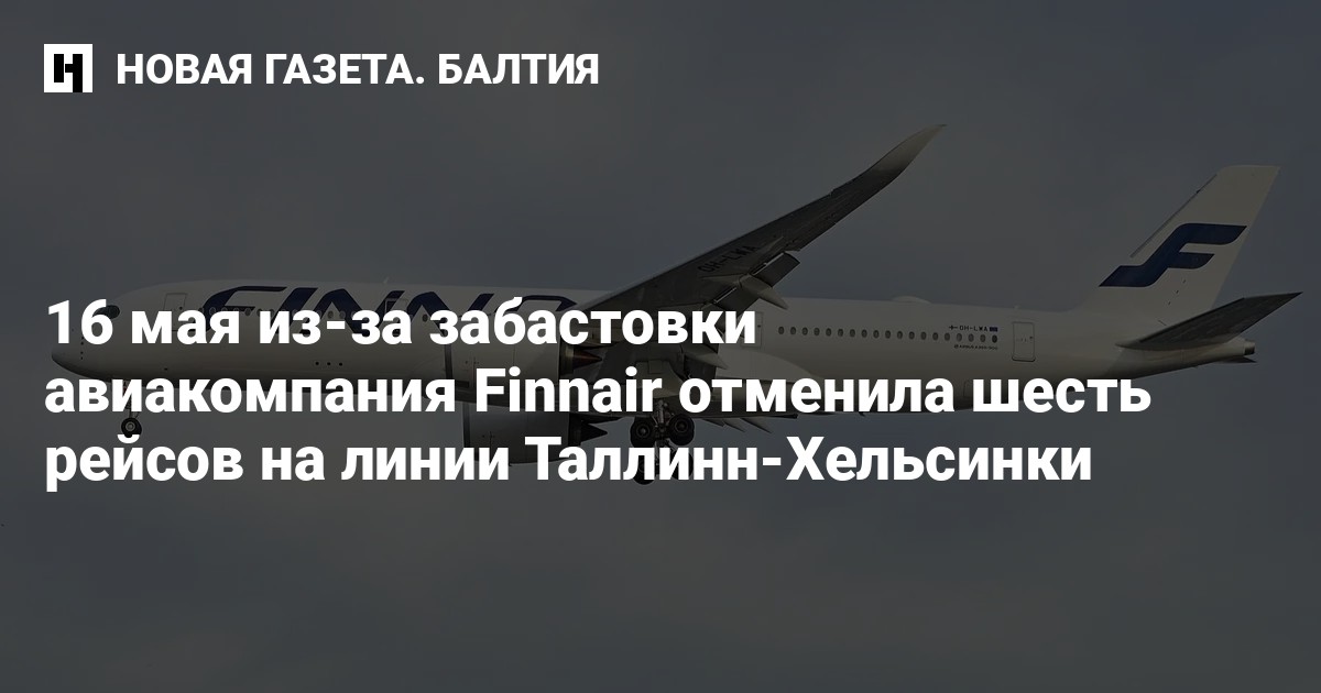 16 мая в связи с забастовкой в аэропорту Хельсинки финская авиакомпания Finnair отменила шесть рейсов на линии Таллинн-Хельсинки, пишет Rus.err.ee.