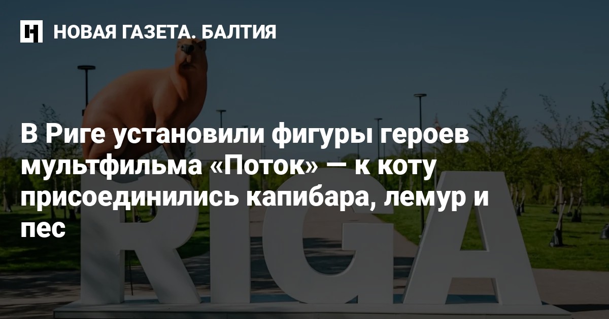 В Риге установили еще несколько фигур с героями мультфильма «Поток». К коту присоединились лемур, собака и капибара.