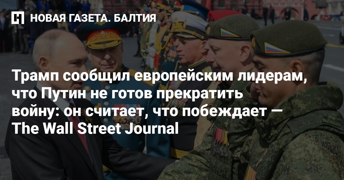 Как пишет WSJ, европейские лидеры и раньше понимали, что Путин не готов остановить войну, но впервые услышали это от Дональда Трампа.