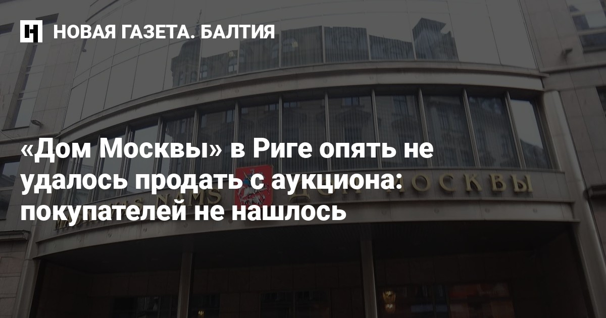 Так называемый «Дом Москвы» в Риге снова не удалось продать на аукционе — не нашлось покупателей, сообщает LETA. В этот раз стартовая цена составляла 2,142 млн евро.