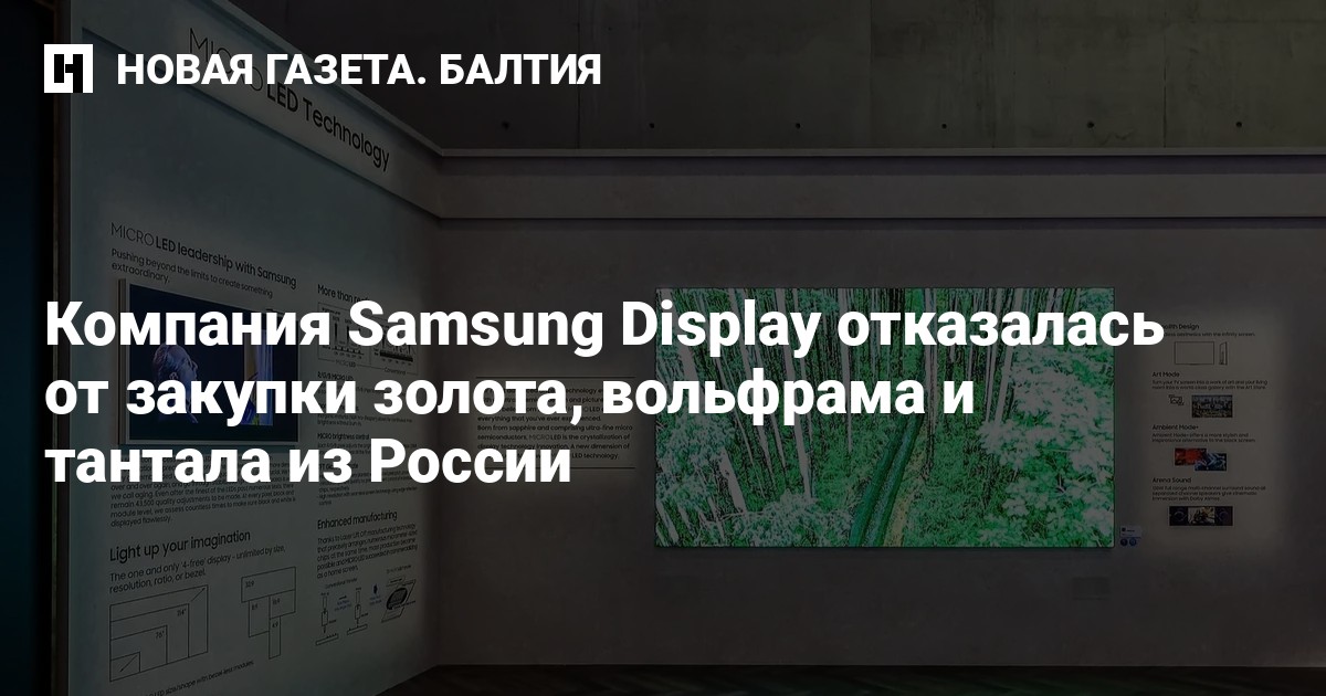 Компания Samsung Display в 2024 году отказалась от покупки золота, вольфрама и тантала в России.