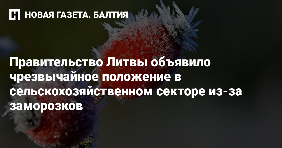 Литовское правительство объявило чрезвычайную ситуацию из-за весенних заморозков, которые причинили серьезный ущерб сельскохозяйственному сектору страны.