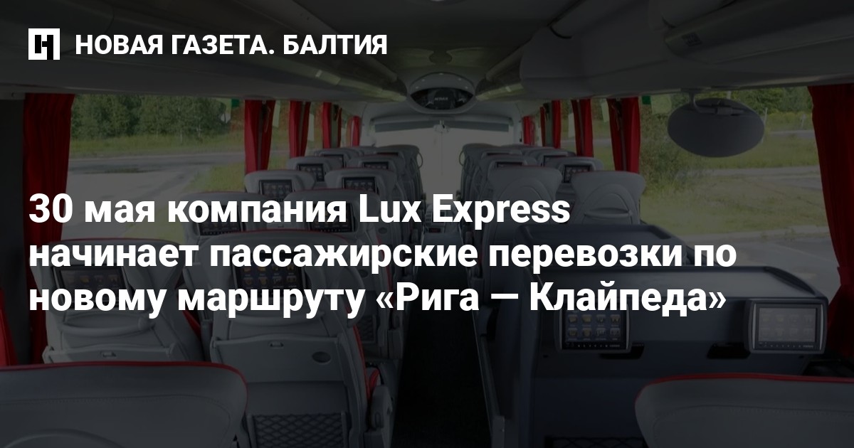 30 мая компания Lux Express начинает пассажирские перевозки по новому маршруту «Рига — Клайпеда», пишет Mixnews.lv.