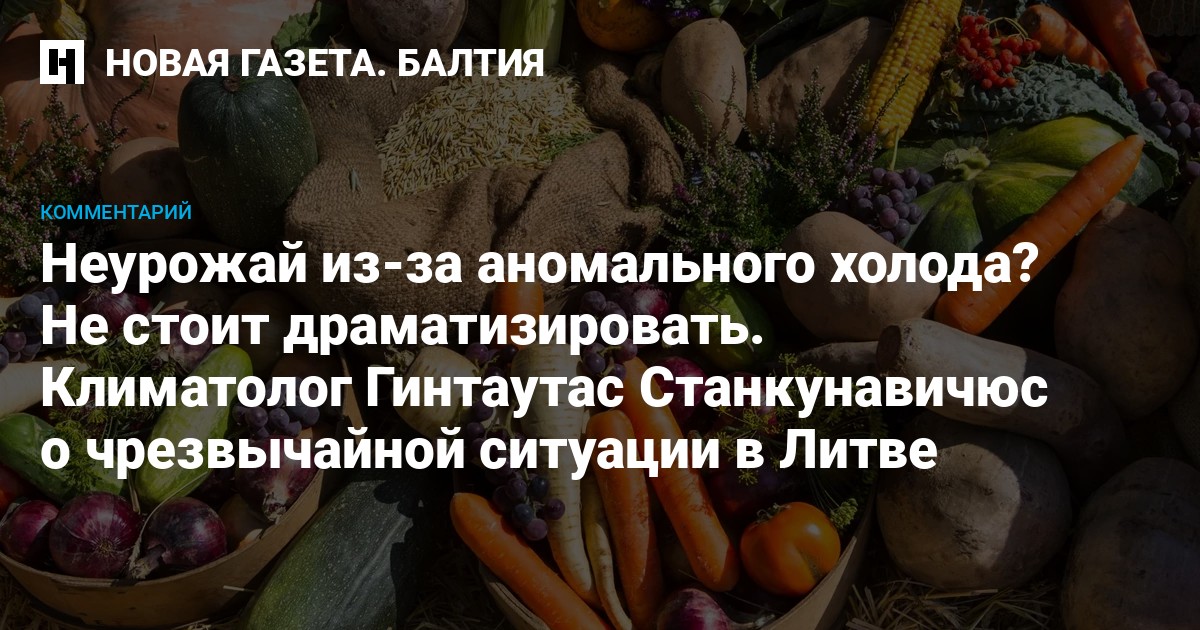 Погода продолжает выкидывать коленца: после аномальных холодов зарядили дожди. Между тем, последствия экстремальных метеоусловий уже наступили. По некоторым оценкам, в отдельных регионах Литвы погибло до 50-90% урожая, в других — до 100% ягод и фруктов. Правительство объявило чрезвычайную ситуацию. Что это означает и как отразится на обычных людях, «Новая газета.Балтия» обсудила с климатологом Гинтаутасом Станкунавичюсом.