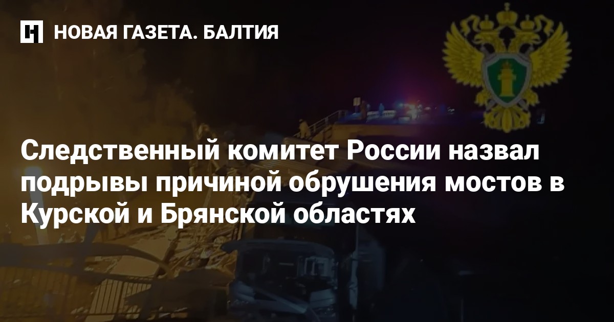Следственный комитет России заявил, что автомобильный мост в Брянской области и железнодорожный мост в Курской были подорваны.